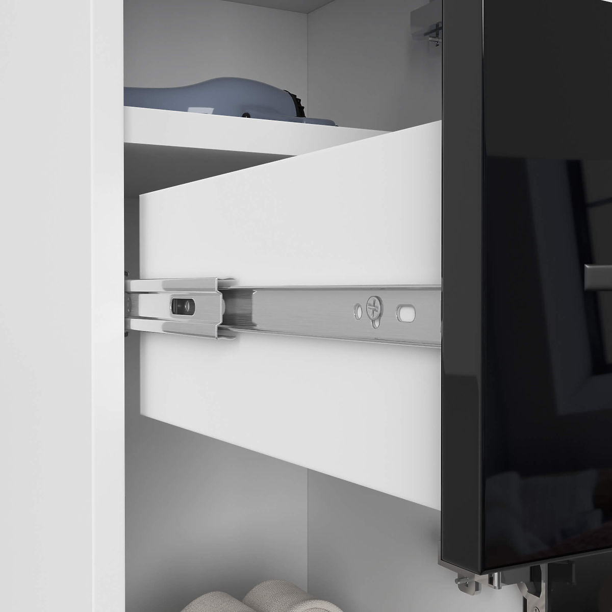 For bathroom interiors, we offer the cabinet-column, bathroom shelf fin 2D 1SZ (white/black gloss), which: