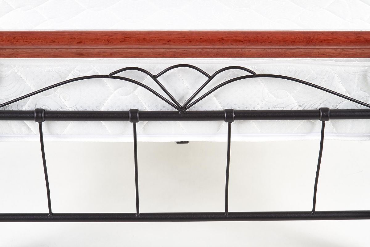 The Veronica bed from the renowned manufacturer Halmar is an elegant and comfortable solution for a stylish bedroom. It stands out with its decoratively adorned headboard and footboard, made from thick, stylishly twisted wire, giving the bed a romantic yet slightly rustic character. Stability and long-lasting durability are ensured by four solid wooden legs, which also form the corner parts of the structure. The surface finish in antique cherry highlights the timeless appearance and easily combines with both classic and vintage interiors. The Veronica bed is an ideal choice for those seeking a combination of aesthetics, strength, and comfort. It looks great in bedrooms styled in a romantic, traditional, or country manner.
