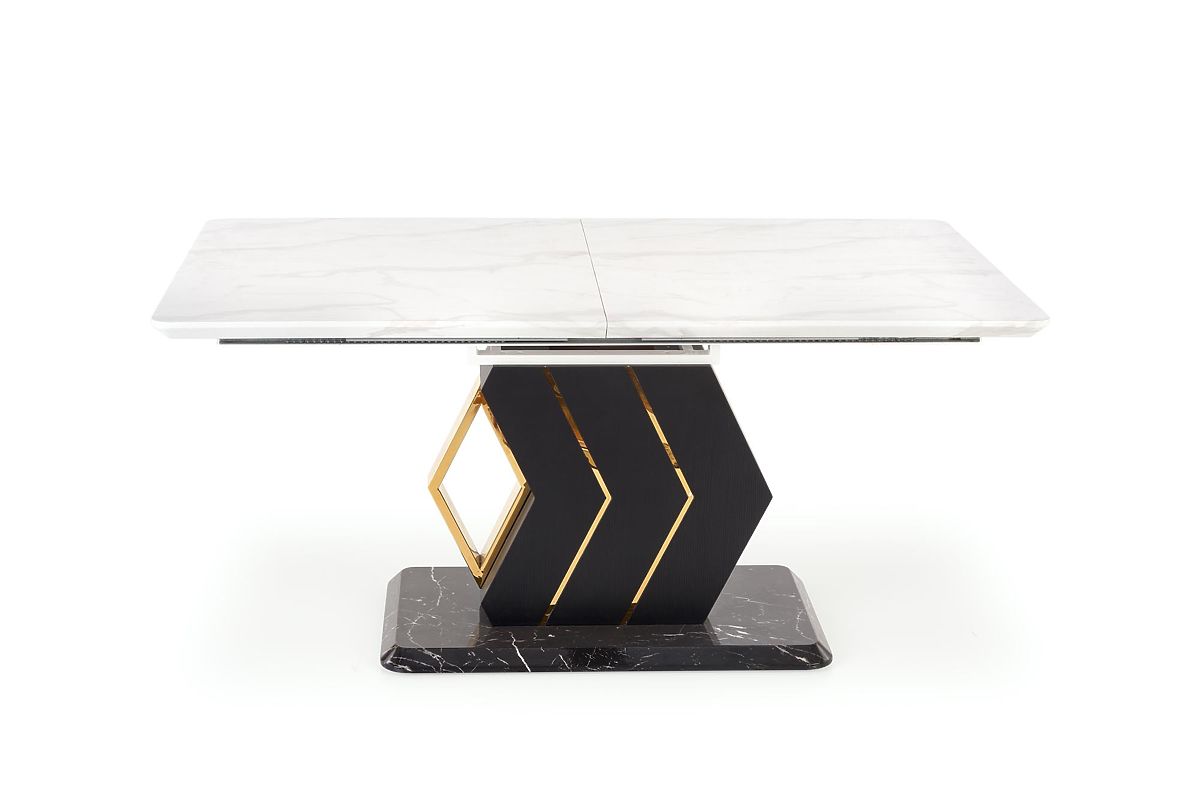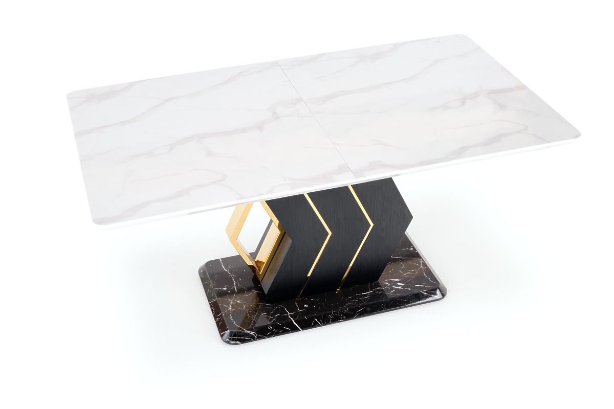 Lukahome.eu » Dining room and kitchen / Dining tables / VINCENZO extendable table top: white marble, leg black/gold (3p=1pc)