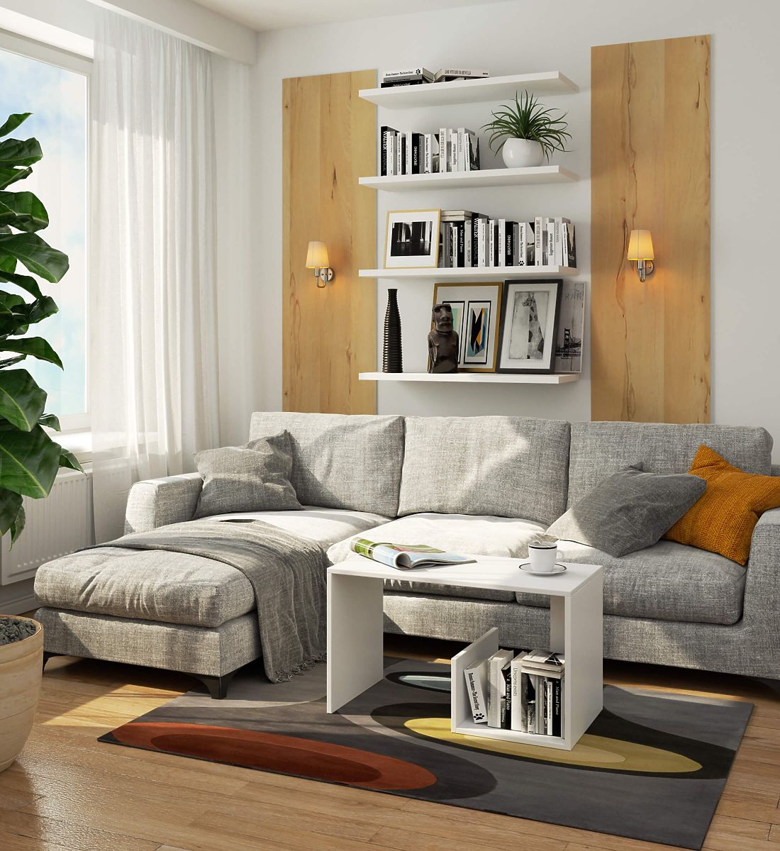 The Paul white coffee table is a functional piece of furniture designed with a modern living room in mind. It is ideally suited for a living room, where it will serve as a coffee and snack table, placed near a corner or sofa. However, there is nothing to prevent it from being placed in a bedroom or a teenager's room. The white Paul coffee tables have a simple construction maintained in minimalist, Scandinavian patterns. They are made of laminated board but do not lose strength, weighing 15 kg. The width of the coffee table is 80 cm, length 40 cm, and height 45 cm. An additional shelf on the floor allows you to place items that you don't need to have in sight - such as books or board games.