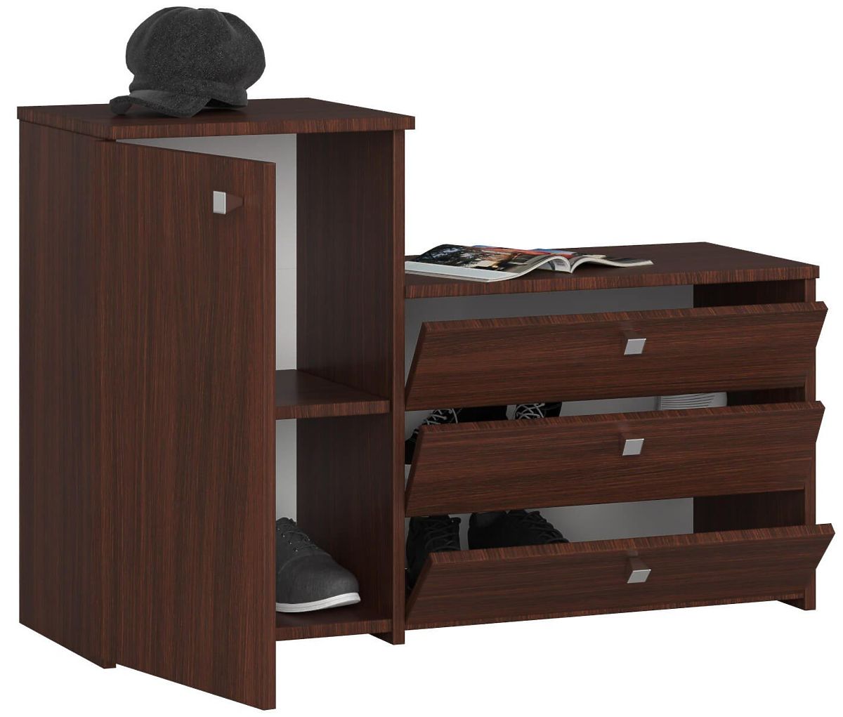 Shoe Cabinet S16 with Dresser 3 Flip Doors - Wenge