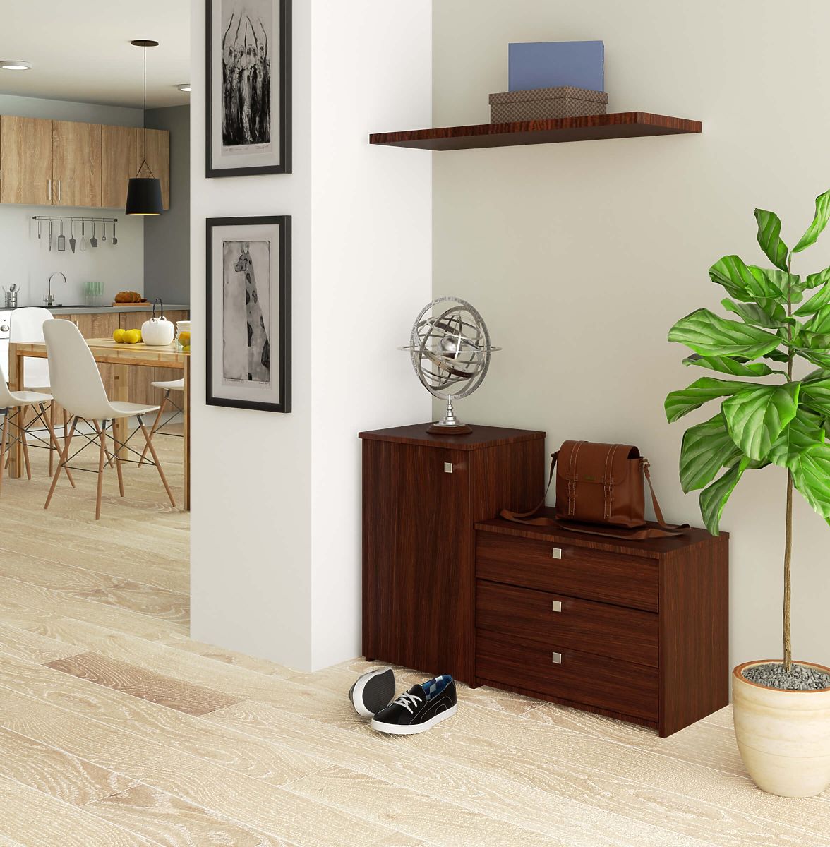 WENGE HALLWAY FURNITURE SET The shoe cabinet combined with a dresser ensures functionality and space-saving.