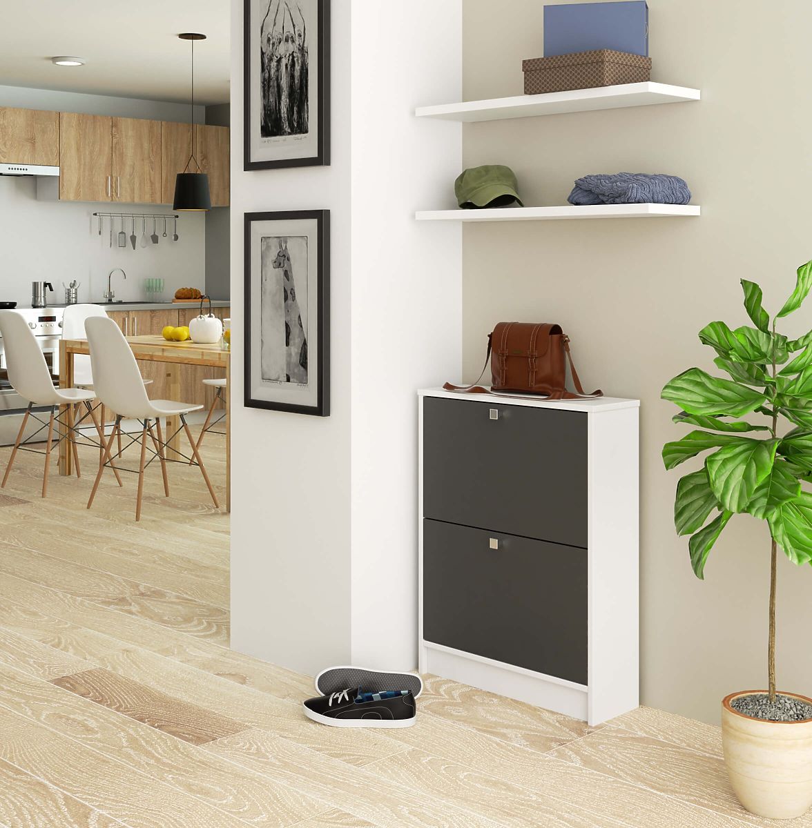 Shoe cabinet with flip doors and a capacity for 6 pairs. .. more
