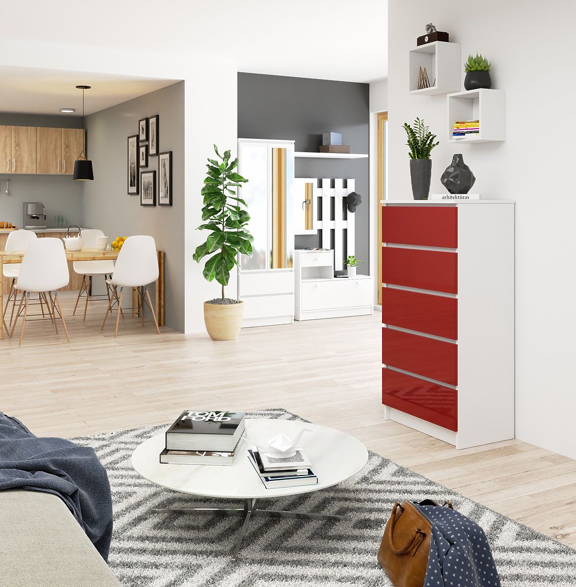 CHEST OF DRAWERS K60 5 DRAWERS HIGH GLOSS Made from 16 mm abrasion-resistant laminated board.