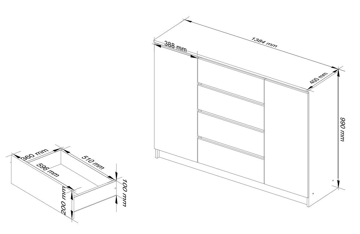 SIDEBOARD K140 2 DOORS 4 DRAWERS