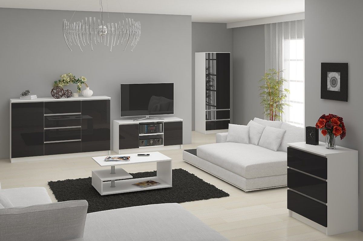 The K 140 white-graphite sideboard is versatile furniture with many usage possibilities. It fits perfectly into almost any modern interior. It can serve as a dresser in a bedroom or children's room, but also as storage furniture for small items in the living room. In the dining room, it will serve as a spacious sideboard, and in the hallway as a place to store keys, handbags, hats, or scarves.