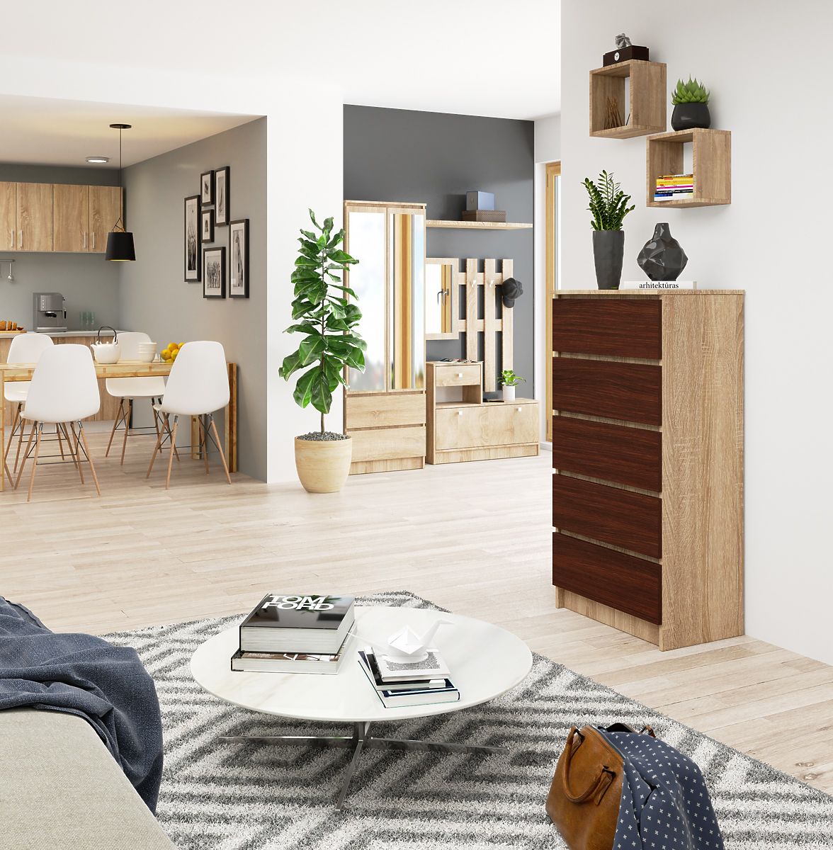 CHEST OF DRAWERS K60 5 DRAWERS Made of 16 mm abrasion-resistant laminated board.