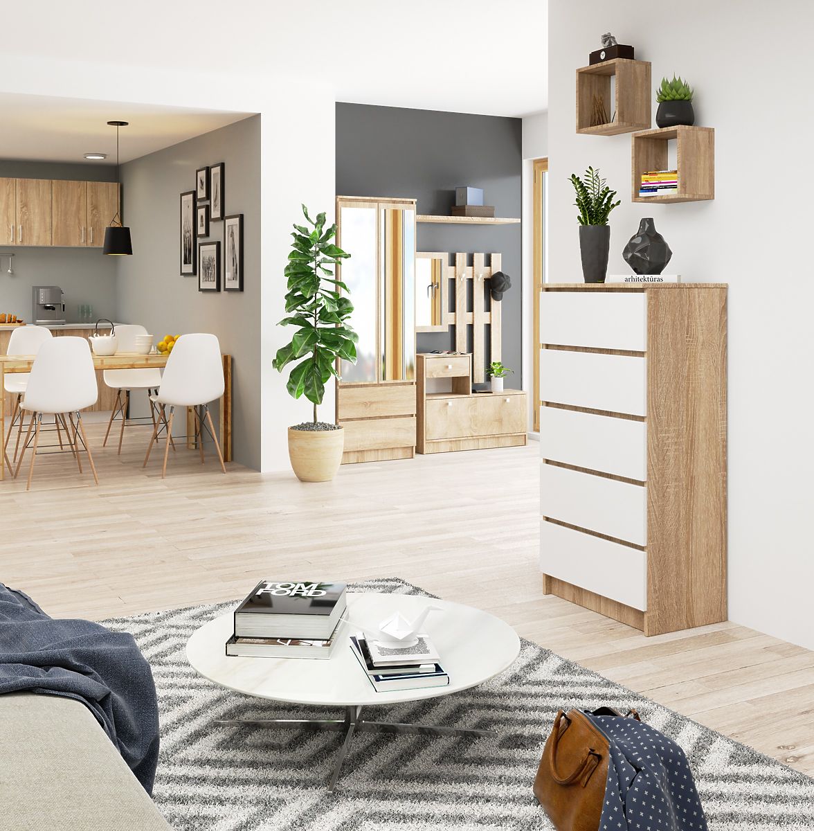 5-drawer chest in Oak Sonoma and White, made from durable laminated board. .. more