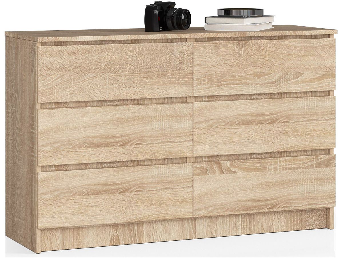 Six practical drawers, a long top, and a color that is highly favored by those who prefer easy-to-clean, versatile, and timeless furniture - these are the features that characterize the K140 dresser in oak sonoma color. This offer deserves attention primarily due to its design and exceptional functionality, but it's also worth noting the high quality and meticulous craftsmanship of the furniture, which can be successfully used in office spaces, living rooms, dining rooms, bedrooms, or many other residential interiors. The solid construction from durable materials will surely be appreciated by even the most demanding customers, for whom the favorable price of the furniture will also be an advantage.