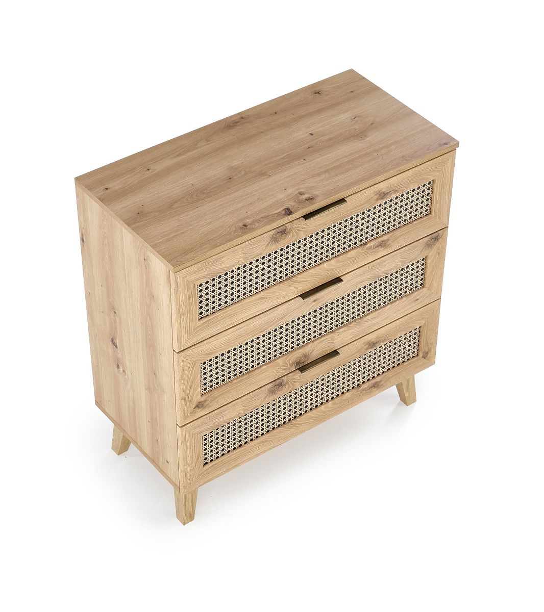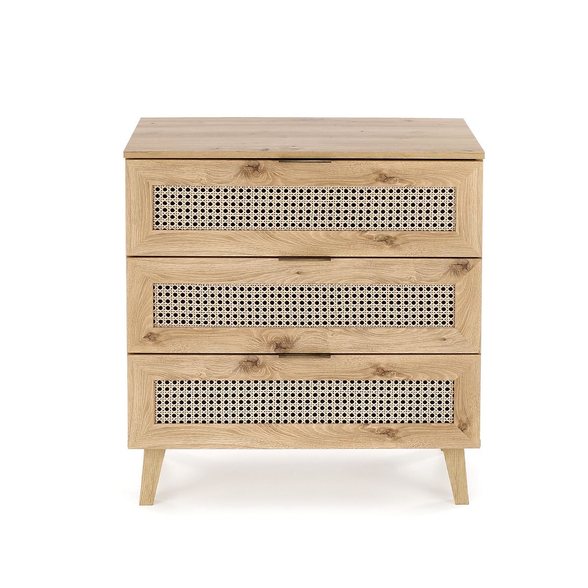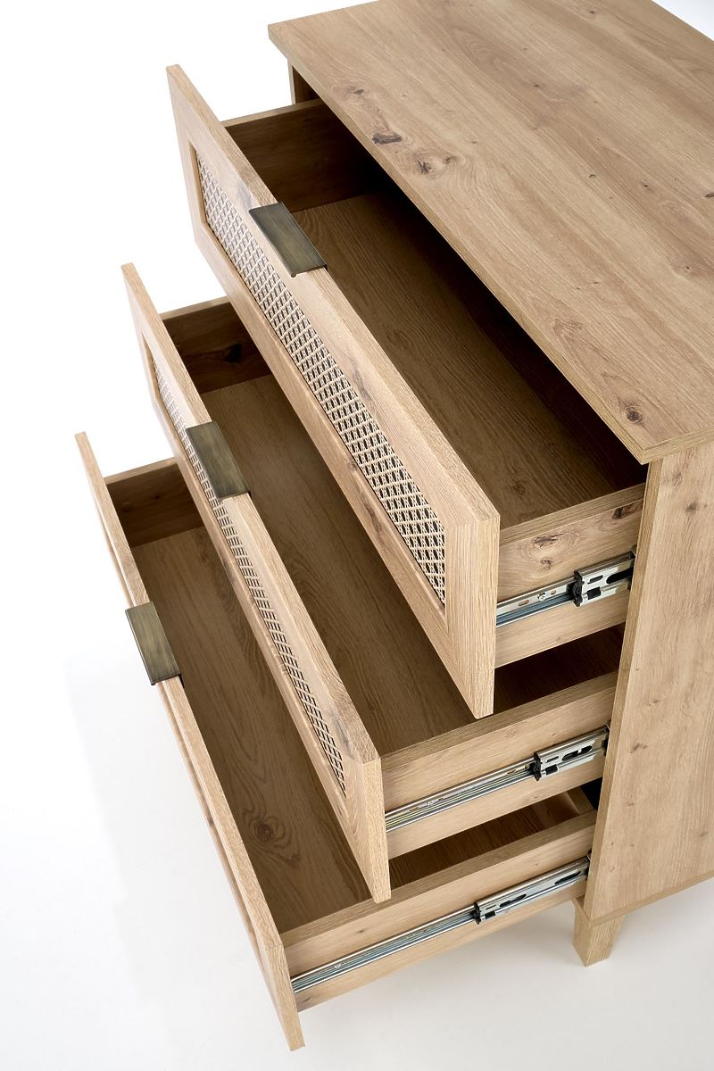 Three spacious drawers and a boho touch in oak artisan. .. more