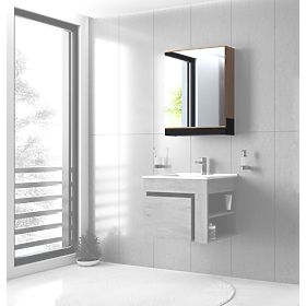 Compact vanity cabinet with drawer and shelves for 60 cm wide sinks. .. more