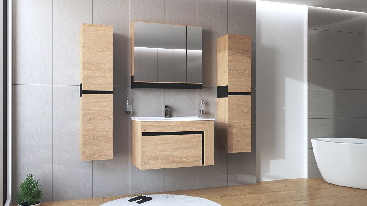 Lukahome.eu » Bathroom and toilet / Bathroom cabinets / DUESA Mirror Cabinet 80/2D Golden Oak (1p=1pc)