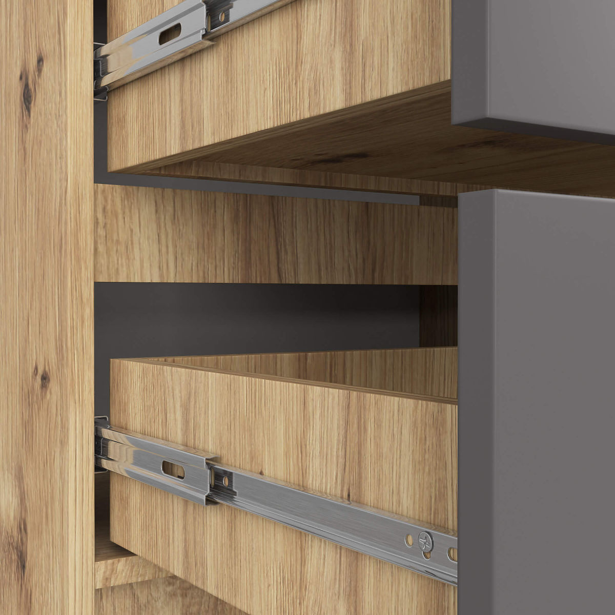 Edges finished with ABS edging MIXED COLORS BODY OAK ARTISAN / FRONTS GRAPHITE GRAY