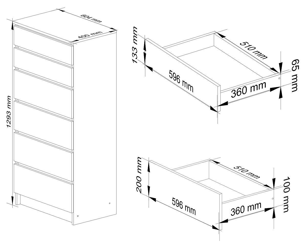 CHEST OF DRAWERS K60 6 DRAWERS Made from 16mm abrasion-resistant laminated board.