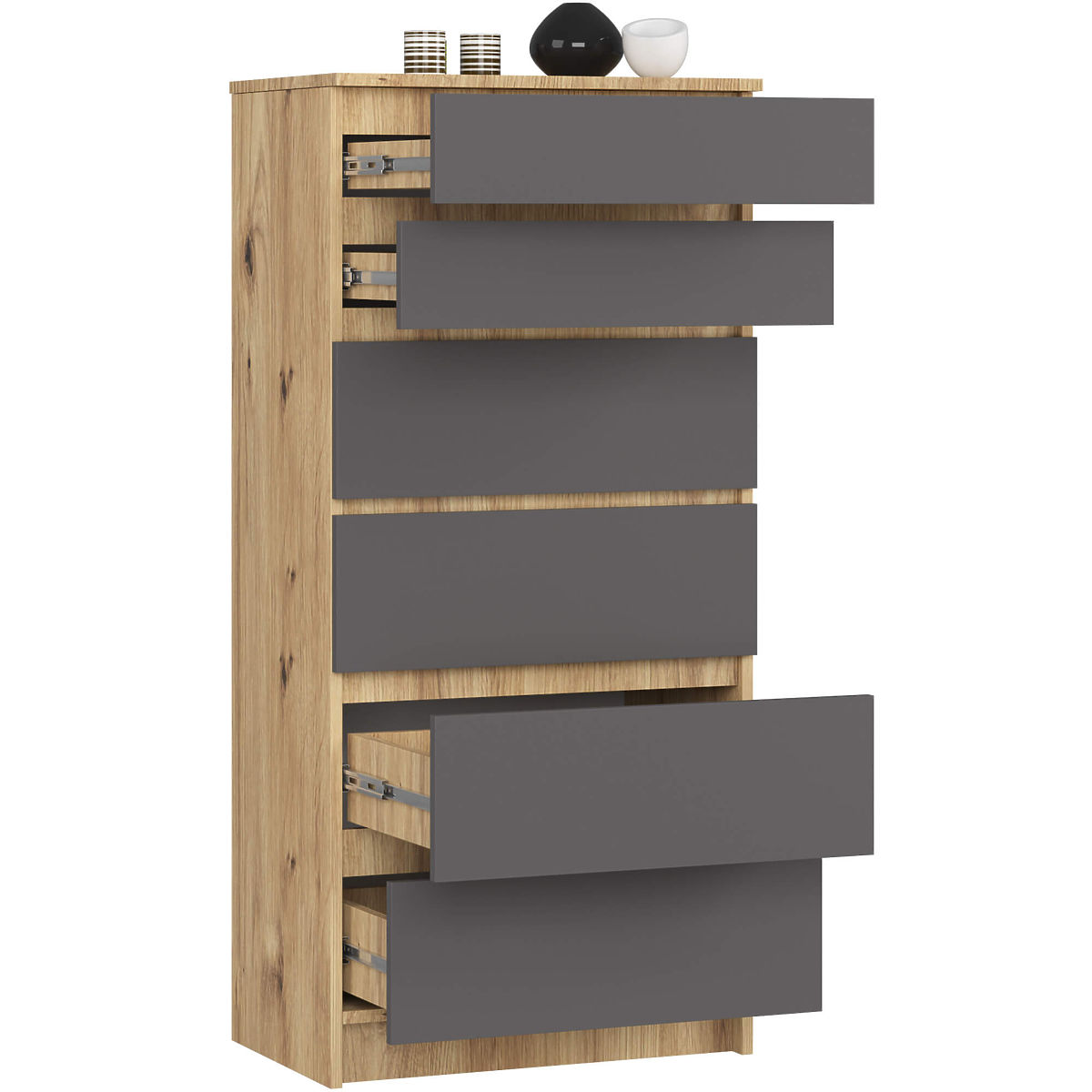 Chest of drawers with 6 drawers in Artisan Oak and Graphite Gray. .. more
