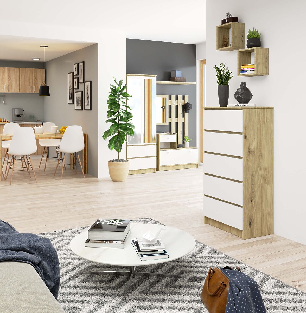 CHEST OF DRAWERS K60 WITH 5 DRAWERS Made from 16 mm abrasion-resistant laminated board.