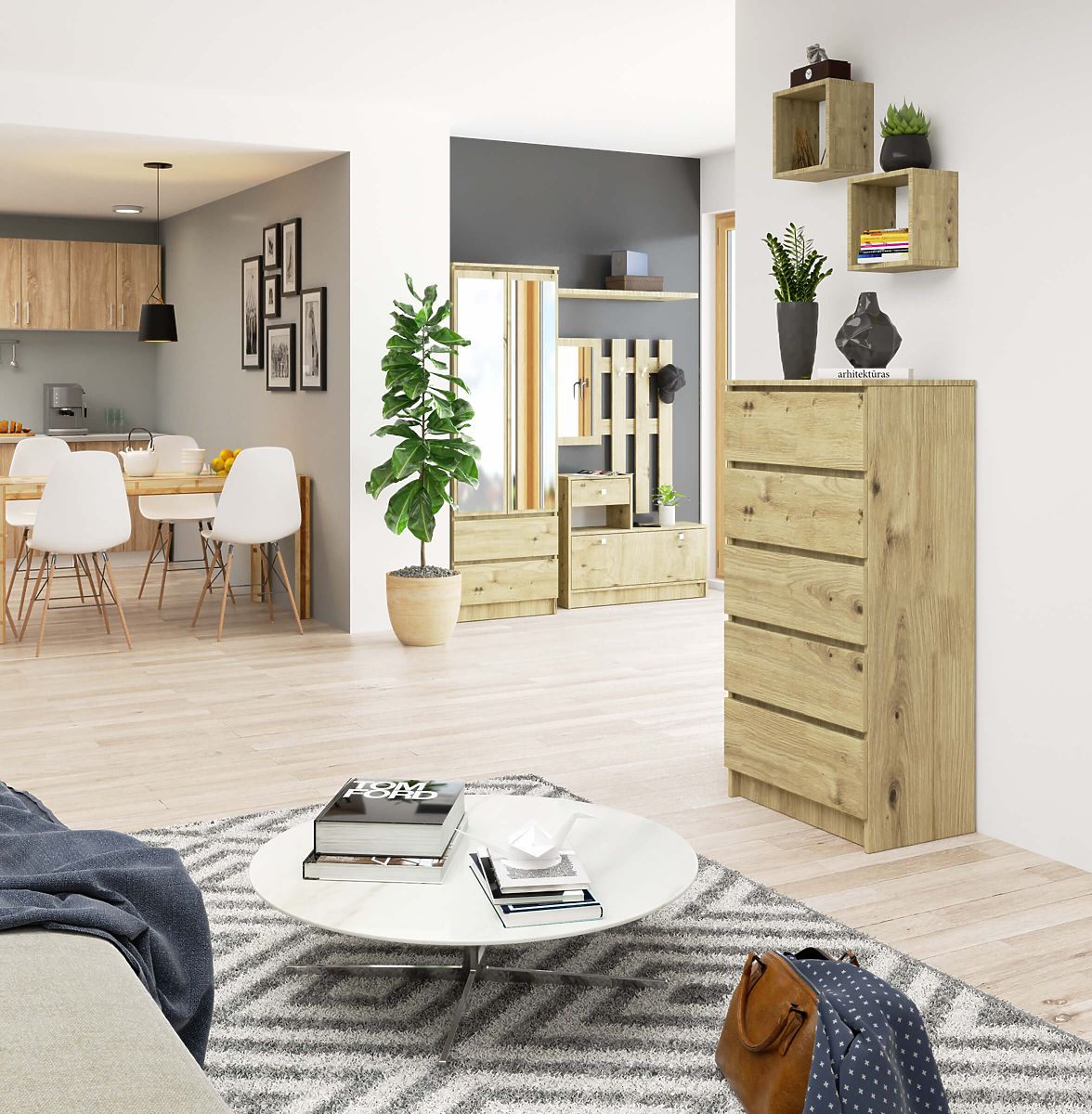 Chest of drawers with 5 drawers in Artisan Oak finish. .. more