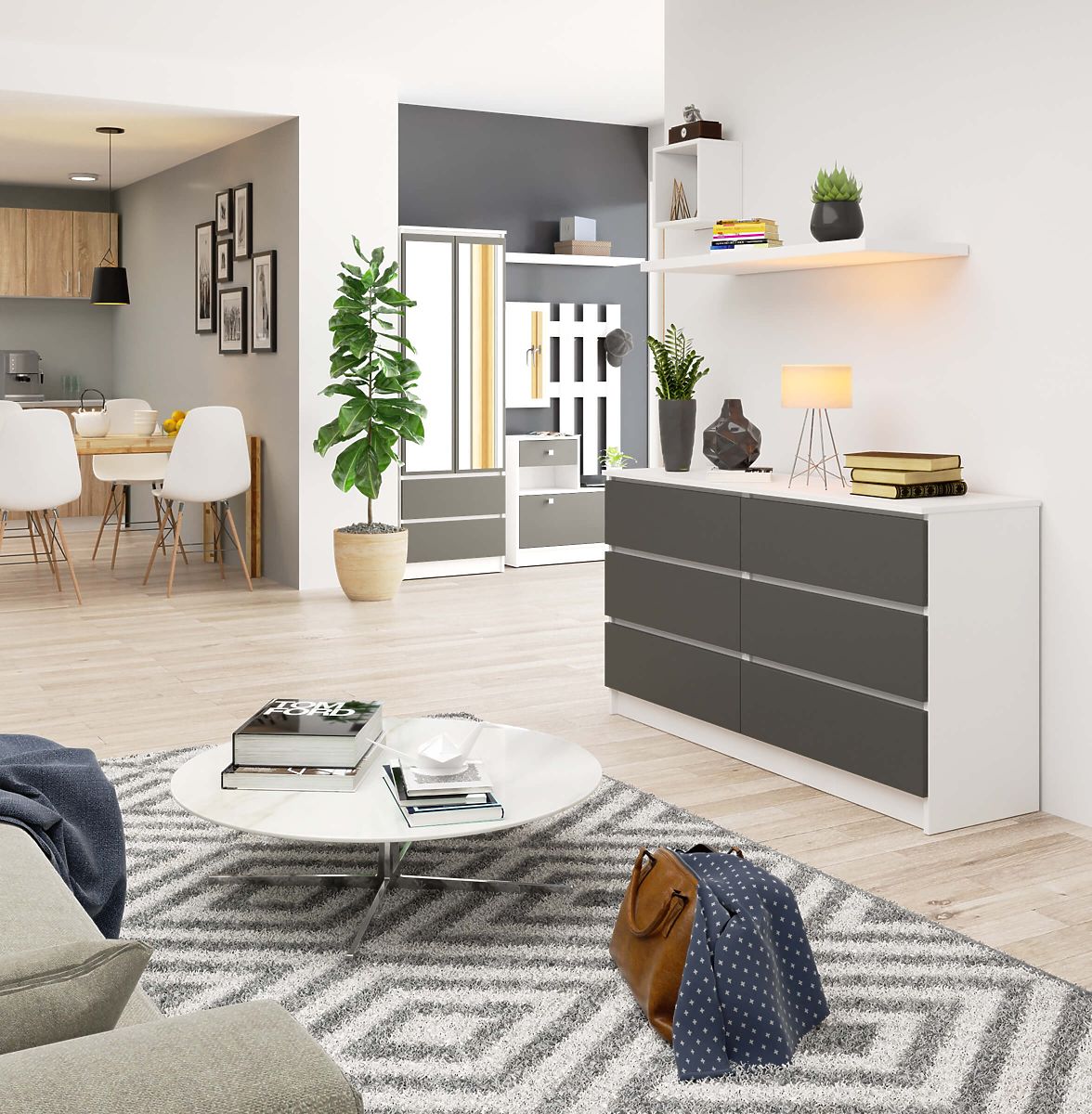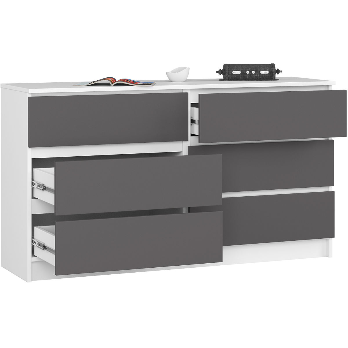 White and graphite gray chest of drawers with 6 drawers. .. more