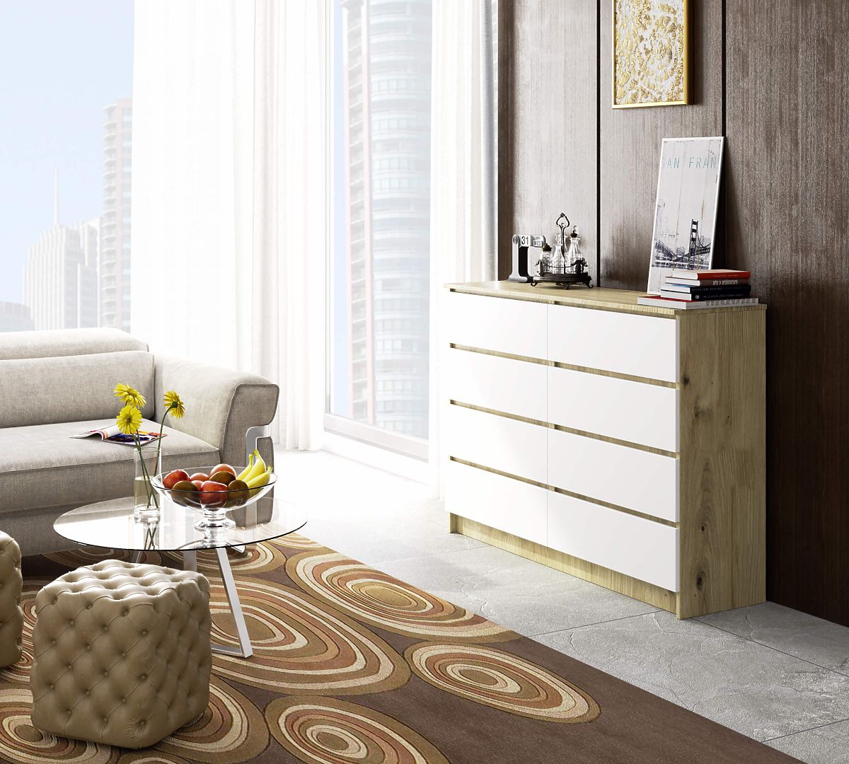 Sideboard with 8 drawers in Oak Artisan and White. .. more