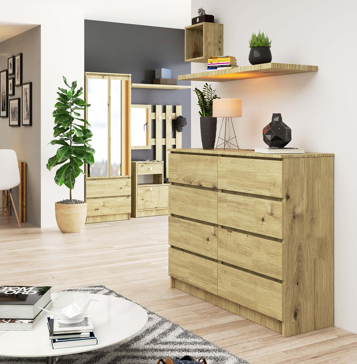 Chest of drawers with 8 drawers in Artisan Oak finish. .. more