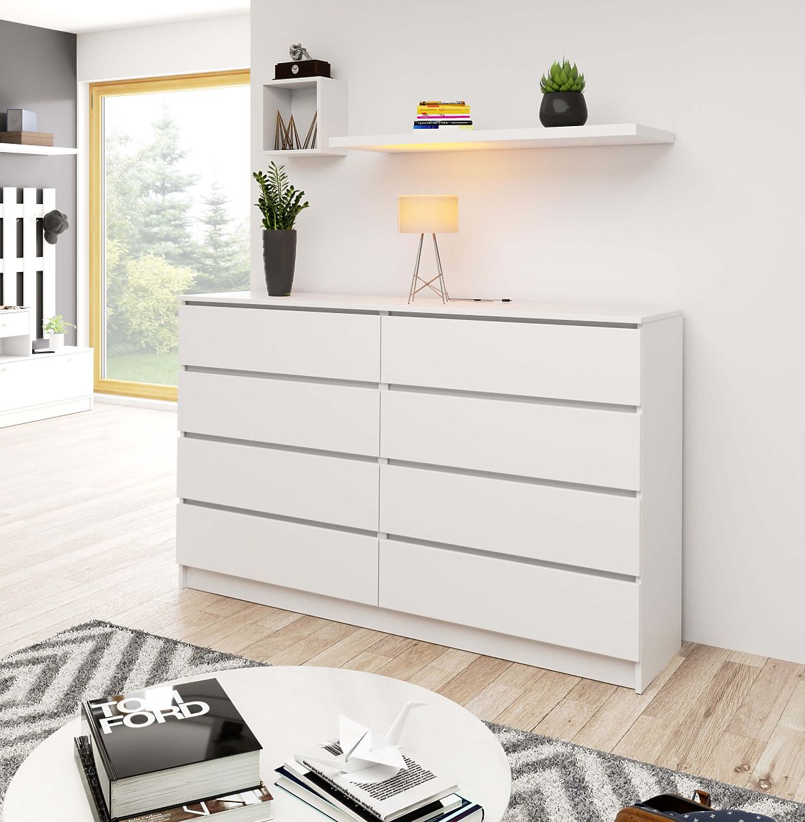 White chest of drawers with 8 spacious drawers. .. more