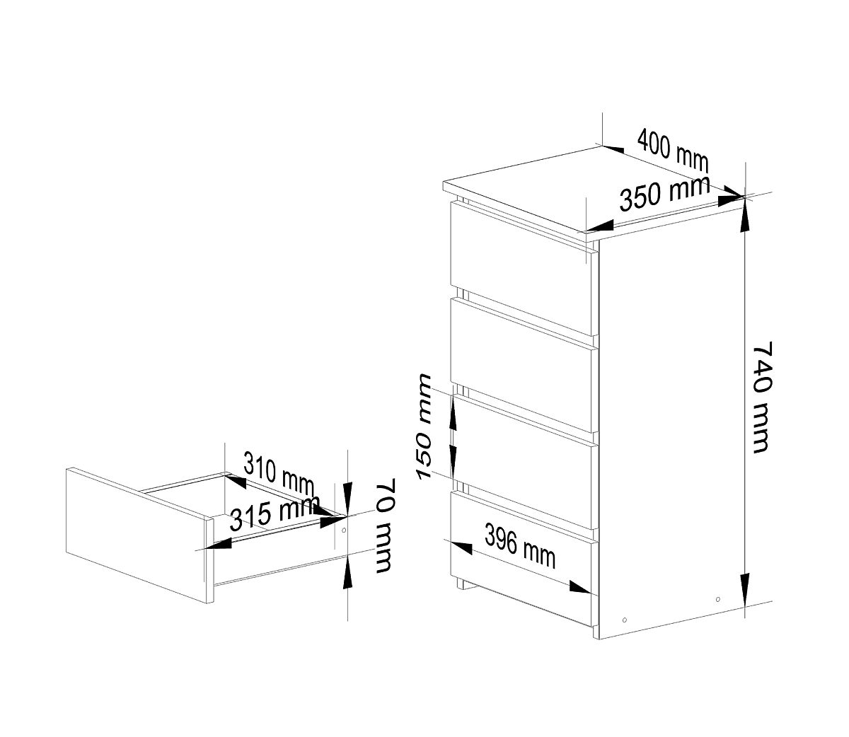 - Capacity - 4 drawers for versatile arrangement,