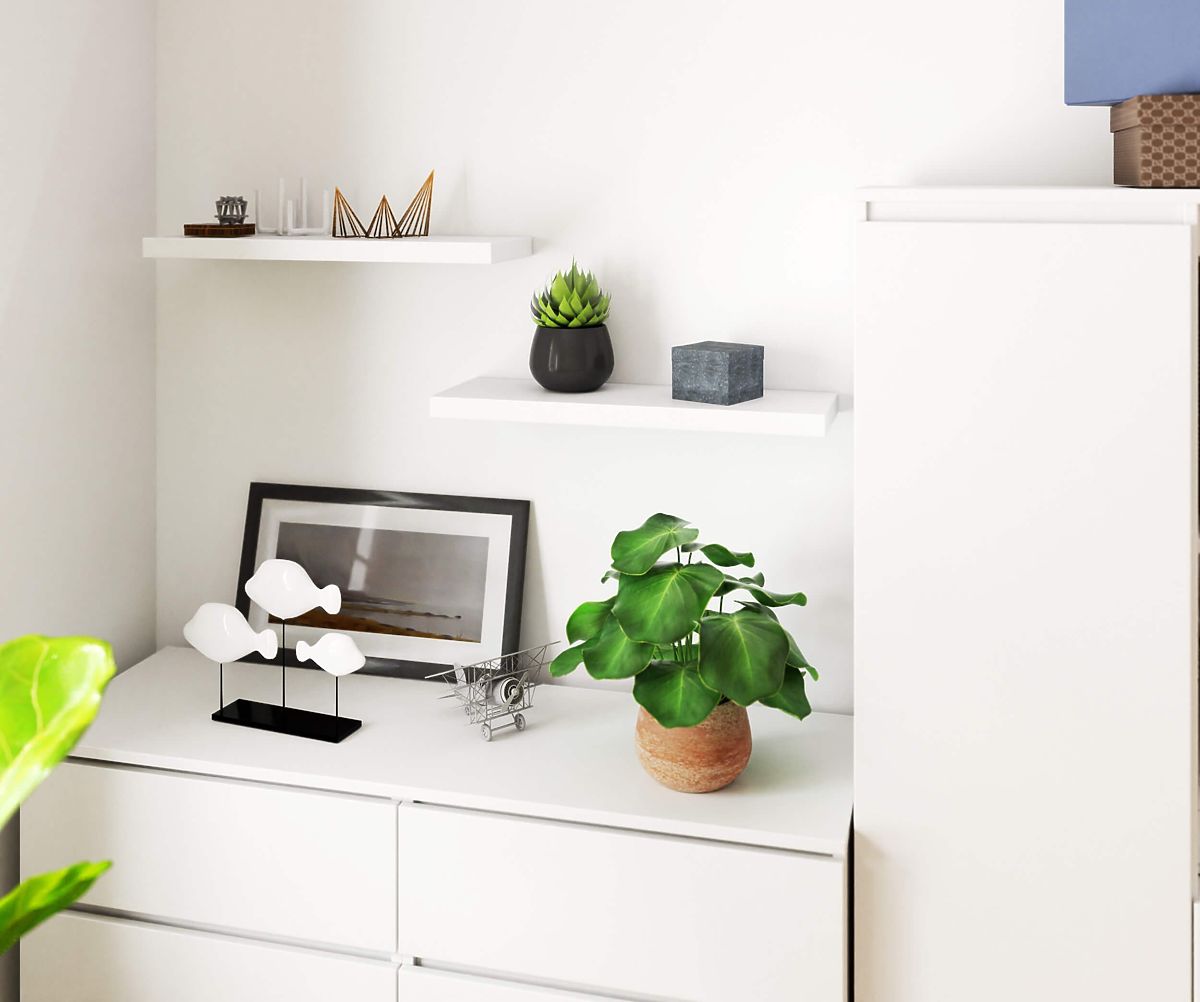 The PS-3 shelf, 60 centimeters long in white color, is a versatile choice that fits into any interior.