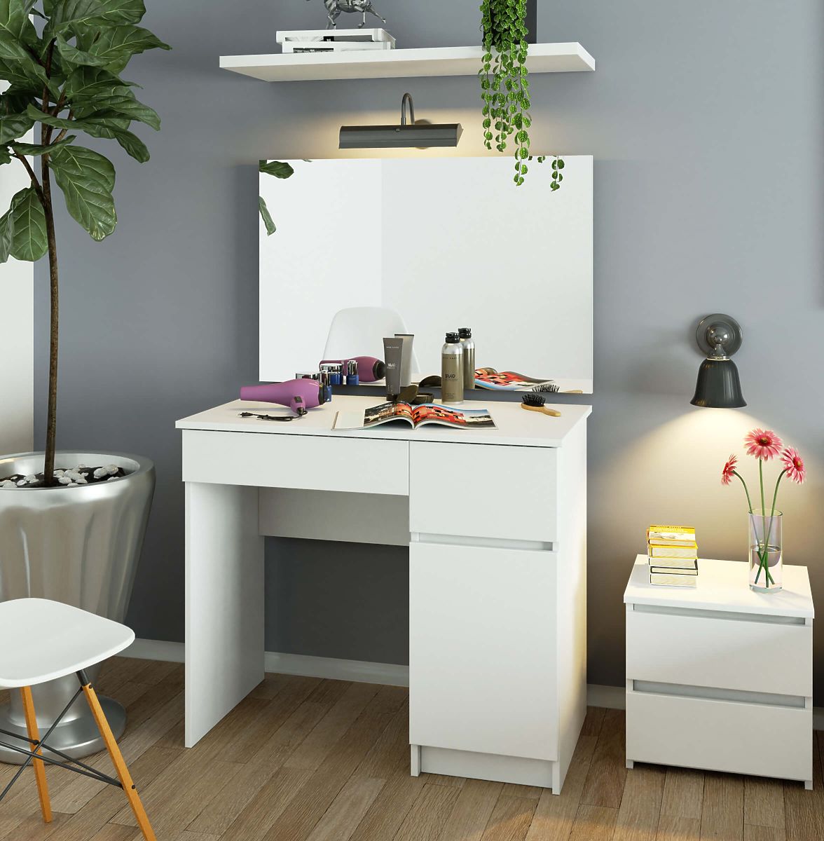 A compact version of a dressing table for women who want the option of quick makeup in the morning. A solution designed for the bedroom and beyond. The dimensions of the dressing table are also perfectly suited for beauty salons.