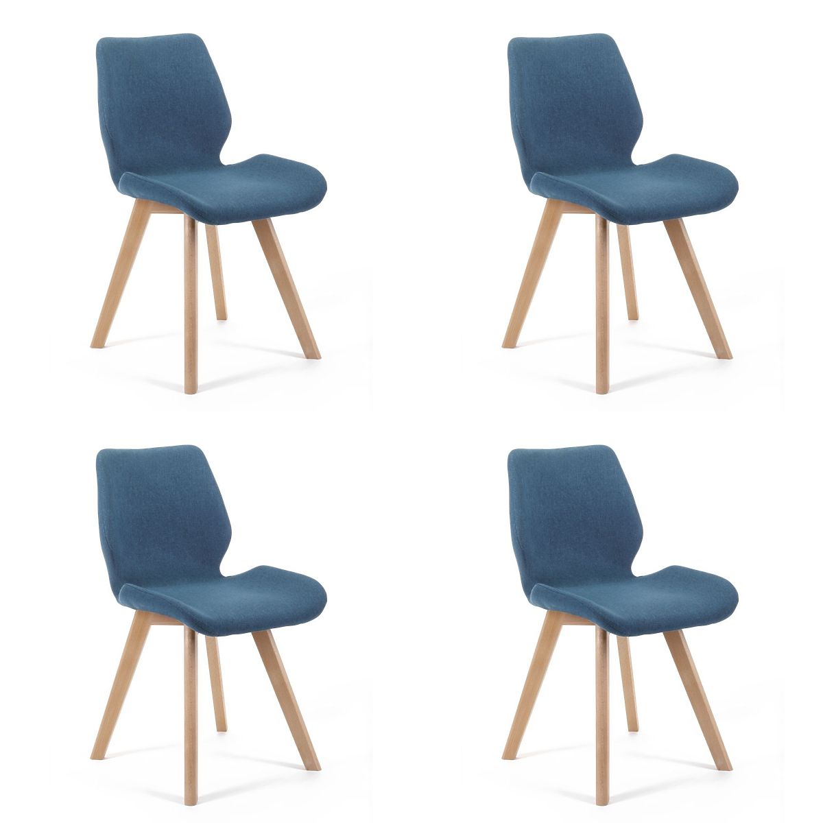 Elegant chair in blue color. The wooden legs add modernity and style to this product. The chair is very attractive and comfortable due to its fabric upholstery. It is suitable for the living room, office, bedroom, waiting room, or reception area. Chairs are sold in sets - 4 pieces in one package.