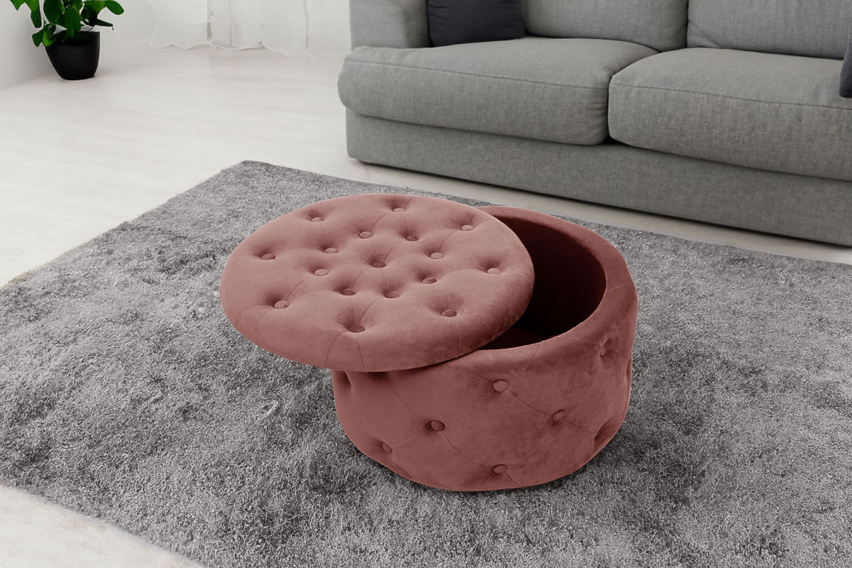 A footstool or pouf is a great addition to the living room or bedroom. It allows tired feet to rest after a long day of walking, and if the pouf is made of soft velour, it enhances the pleasant feeling of relaxation. The modern look is complemented by quilting, which adds an elegant style. The opening lid provides access to storage space, where items not needed for everyday use can be stored.Specifications: