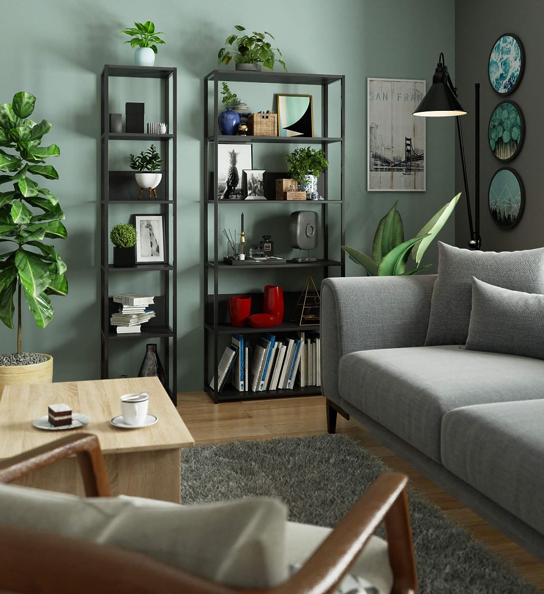 - Elegant appearance: The shelf features a simple form, with a black frame and black shelves,