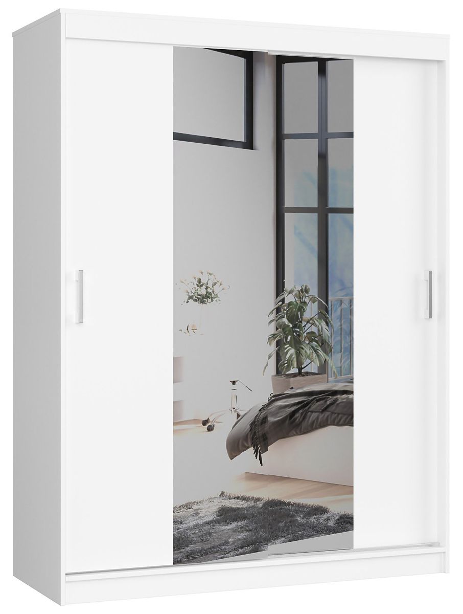 The two-door sliding wardrobe 150 cm CLP with a mirror is a white design that will certainly be useful in a bedroom, hallway, or youth room. The furniture allows for storing clothes and many other items, providing space for hanging jackets, blazers, shirts, dresses, or long coats, along with practical shelves. This design combines an elegant, minimalist appearance with high quality, resulting from quality materials and attention to every detail. The furniture is equipped with a large mirror that can optically enlarge the room.