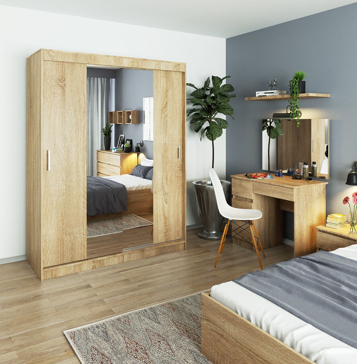 Spacious wardrobe in Sonoma oak color, with sliding doors and a mirror, is a versatile and timeless piece of furniture that will fulfill its function in almost any living space. It is perfect for a children's and youth room, as well as a bedroom or dressing room. In a suitably large hallway, it can serve as a wardrobe for outerwear and other household necessities.