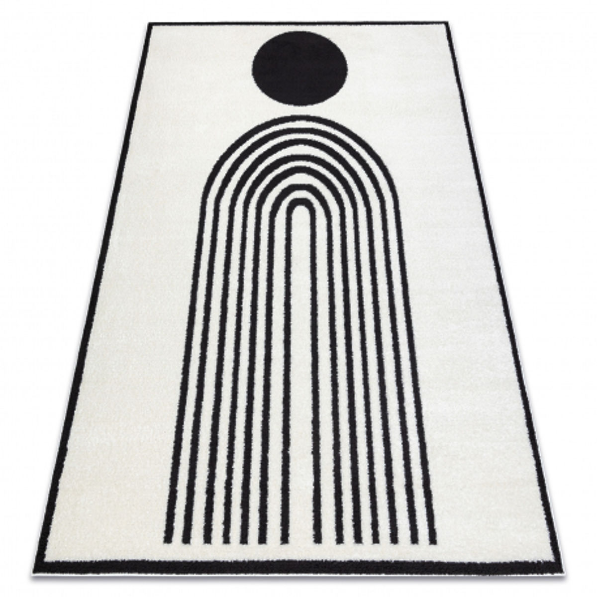 Bring a modern and stylish accent to your interior with the rectangular carpet MODE 8597 featuring a geometric pattern in a combination of cream and black colors. This designer carpet instantly revitalizes the space and adds a sophisticated, contemporary character. It is perfect for the living room, bedroom, or study, where it creates a pleasant and harmonious atmosphere. The carpet is made from 100% polyester, ensuring durability, easy maintenance, and long-lasting life. The 15 mm thickness provides a comfortable feel underfoot, while the weight of 1.8 kg/m² guarantees stability and firmness on the floor. The geometric motif in cream and black shades easily complements various furniture styles and color accessories, allowing for easy coordination with your interior.