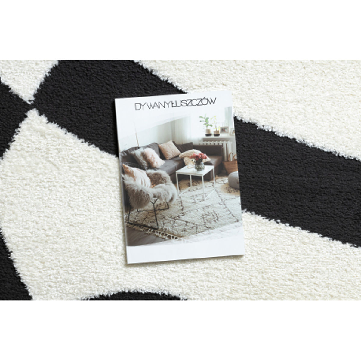 Rectangular carpet with abstract cream and black pattern. .. more