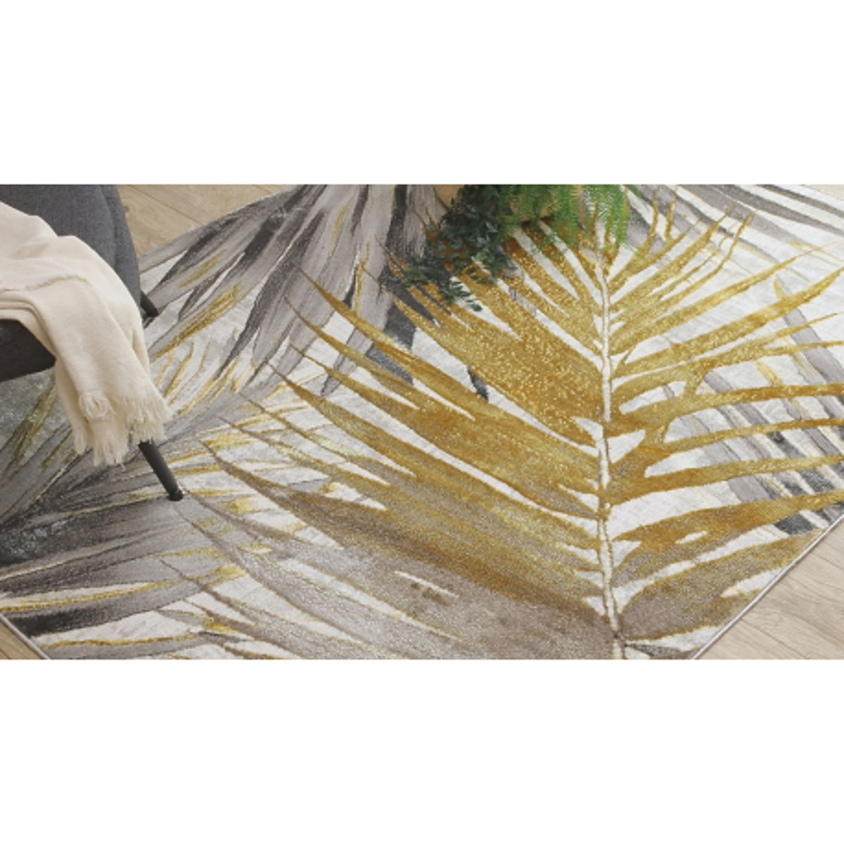 Lukahome.eu » Textiles / Carpets / BLISS Z217AZ276 Carpet Gold / Gray - Palm Leaves, Modern, Textured