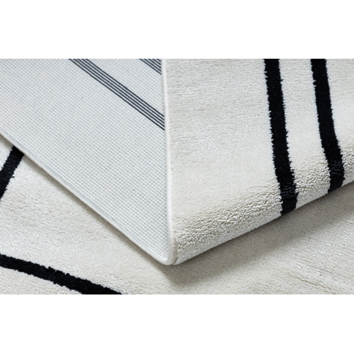 Soft cream carpet with a modern frame motif and clean lines. .. more