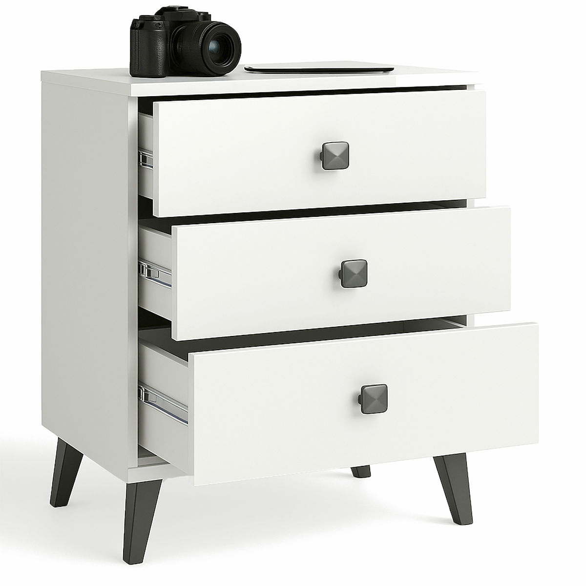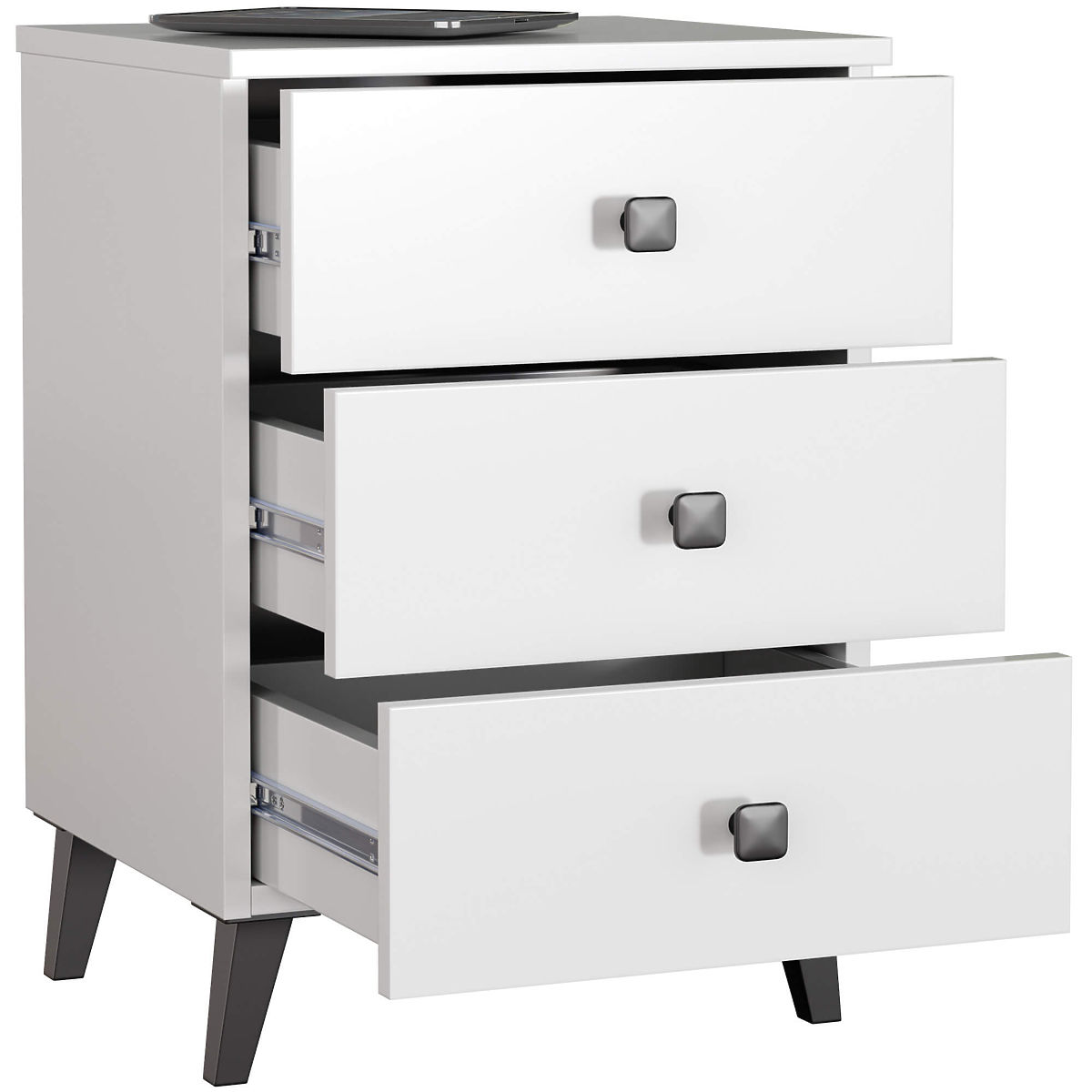 NIGHTSTAND MOBI 3 DRAWERS WHITE BLACK