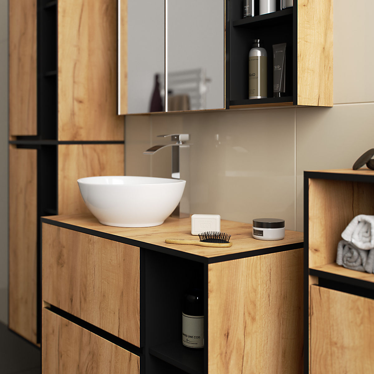 Bathroom cabinets perfectly complement the bathroom equipment, providing necessary space for all cosmetics and detergents and adding a certain style to the bathroom. Spacious cabinets make it easier to maintain order in the room, positively affecting the interior's aesthetics. The VAMI collection is characterized by an eye-catching stylish color scheme - the body and fronts have the same color, while the interior color is different.