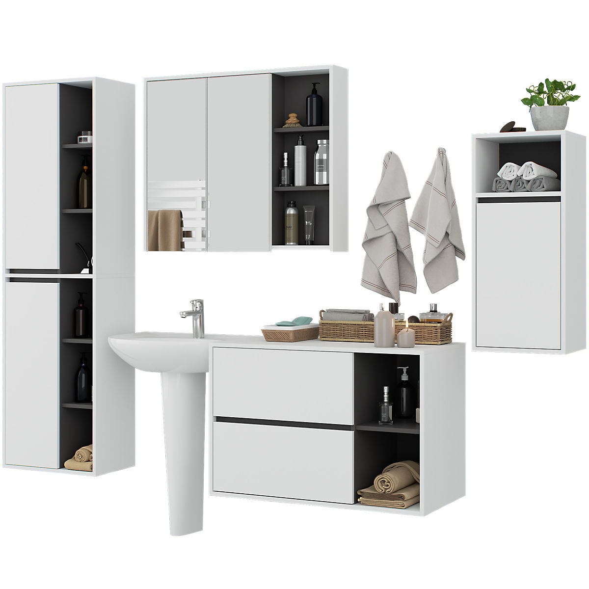 Lukahome.eu » Bathroom and toilet / Bathroom sets / SET OF HANGING BATHROOM FURNITURE VAMI WHITE / GRAPHITE GRAY