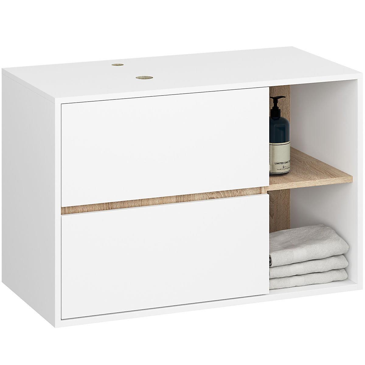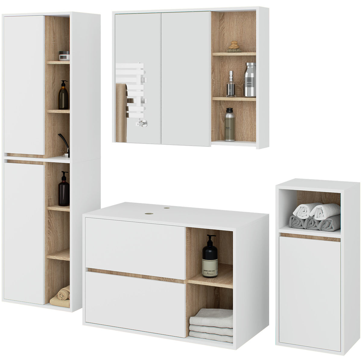 Lukahome.eu » Bathroom and toilet / Bathroom sets / SET OF HANGING BATHROOM FURNITURE WITH OPENINGS VAMI WHITE / SONOMA OAK