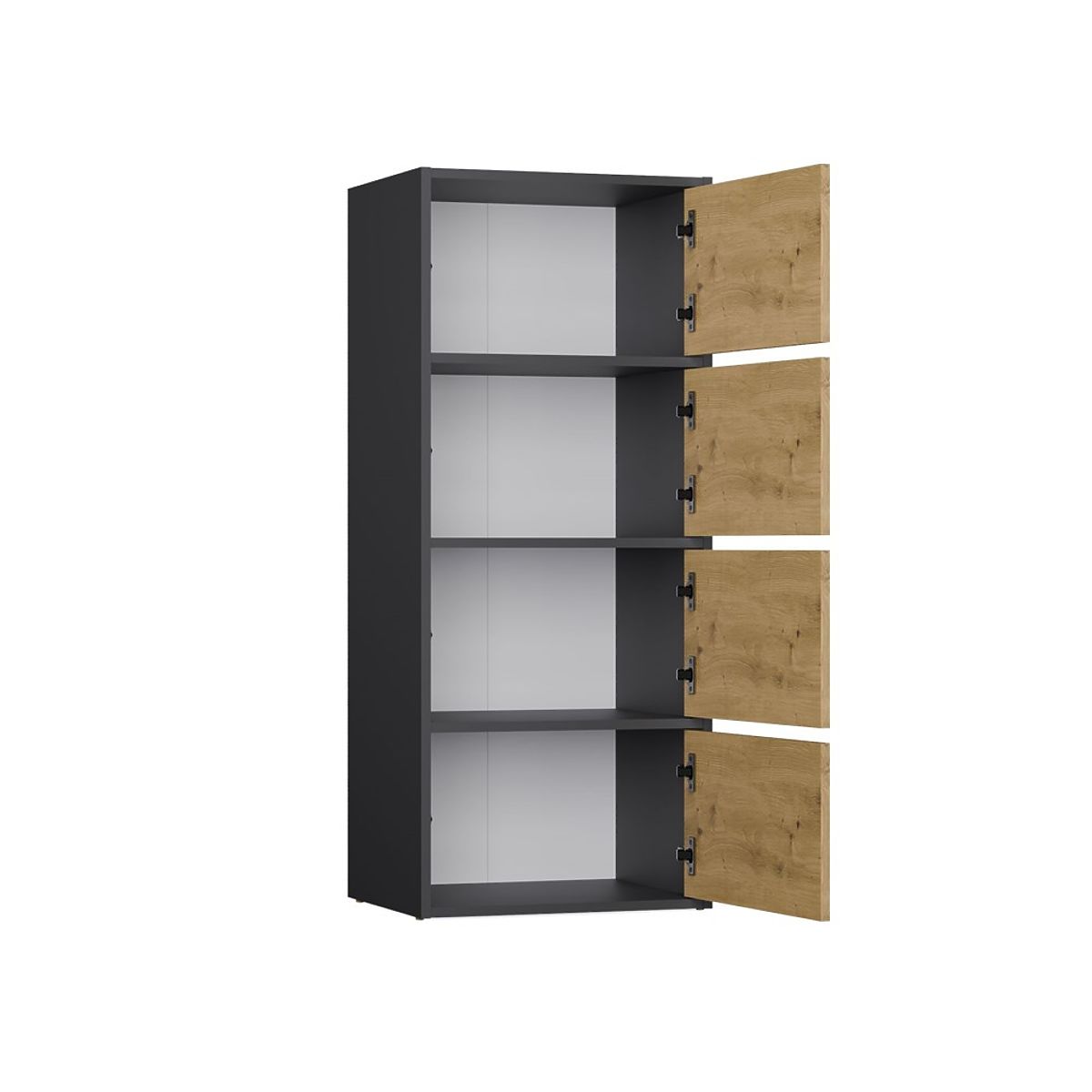 Anthracite and artisan oak sideboard with 4 doors and TIP-ON system. .. more