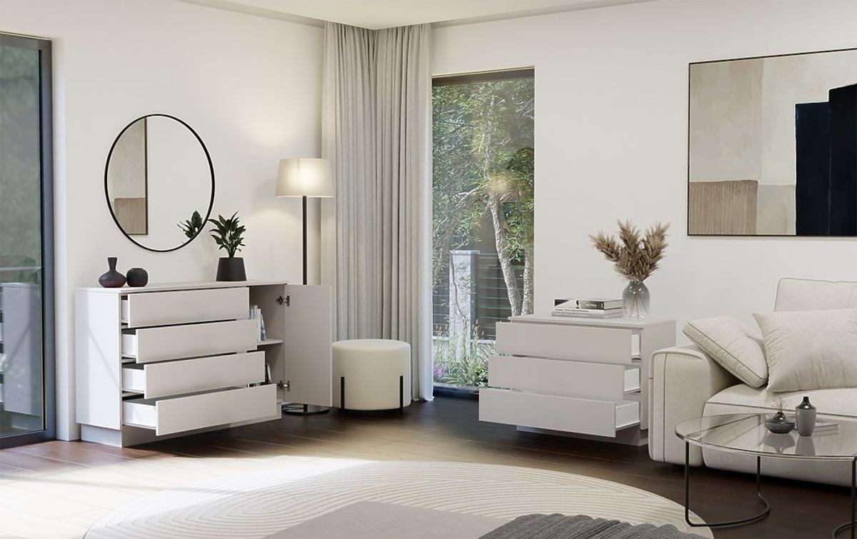Lukahome.eu » Furniture / Commodes / AMBER 1D4S Dresser Cabinet 1 Door 4 Drawers for Bedroom Living Room CASHMERE Beige