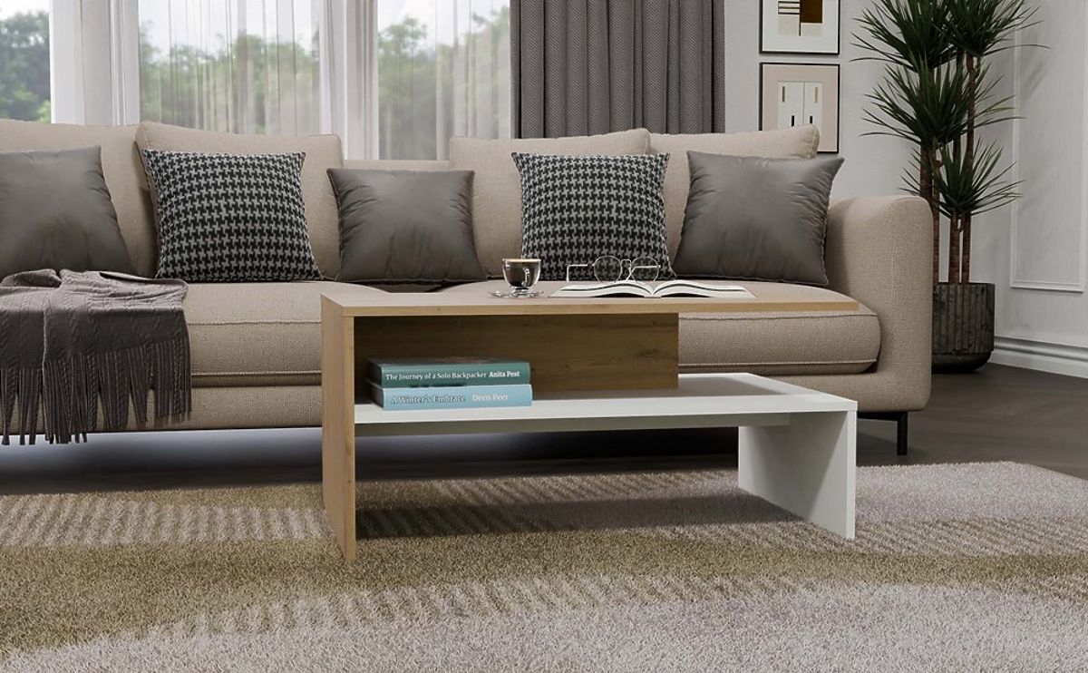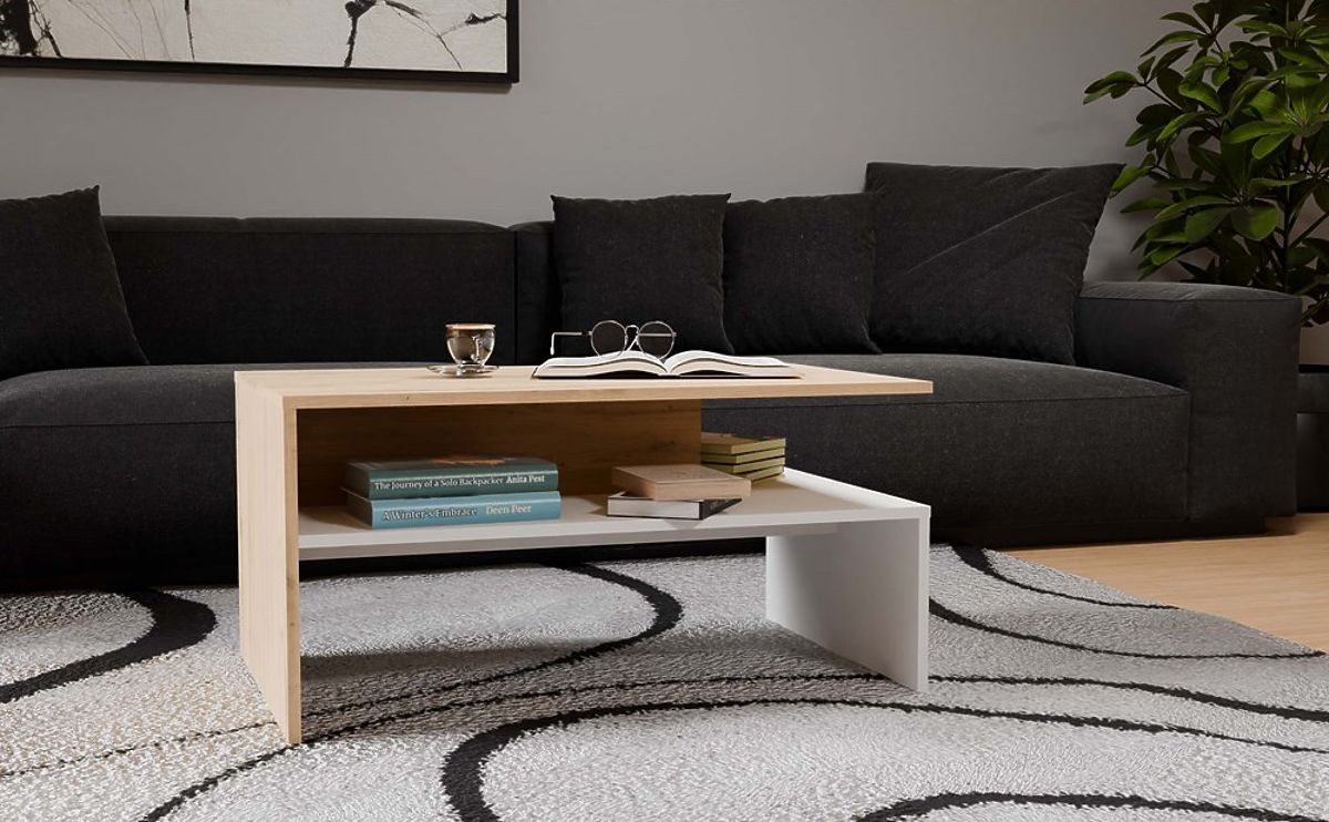 Modern coffee table with minimalist design in artisan oak and white. .. more