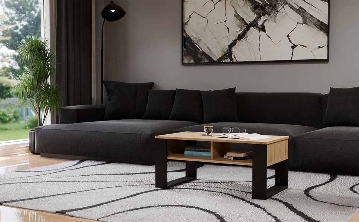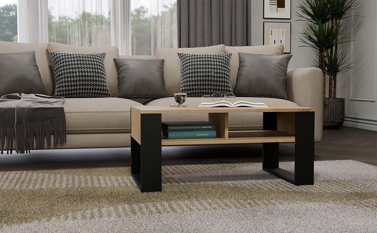 Modern table with spacious shelves, perfect for the living room. .. more