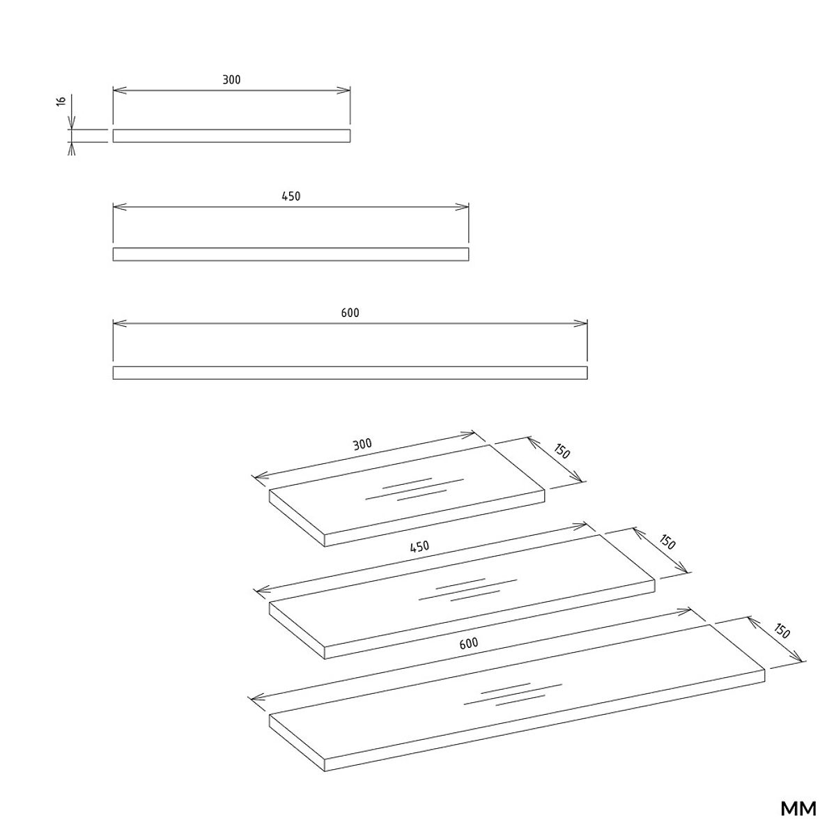 Matte white wall shelves TOBI 3P for displaying books, photos, or plants. .. more