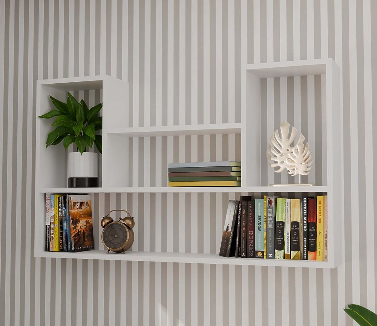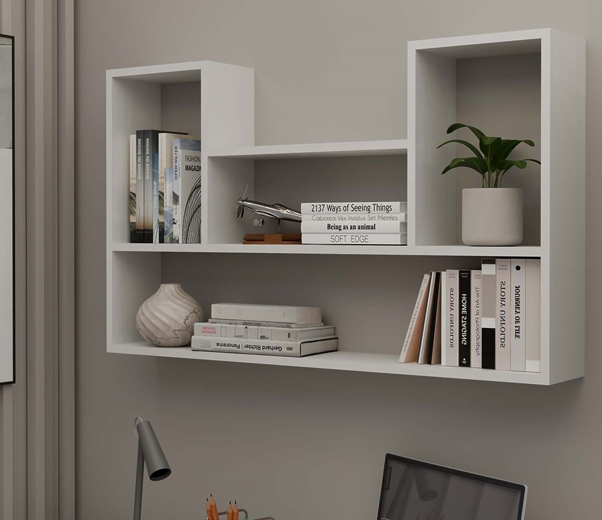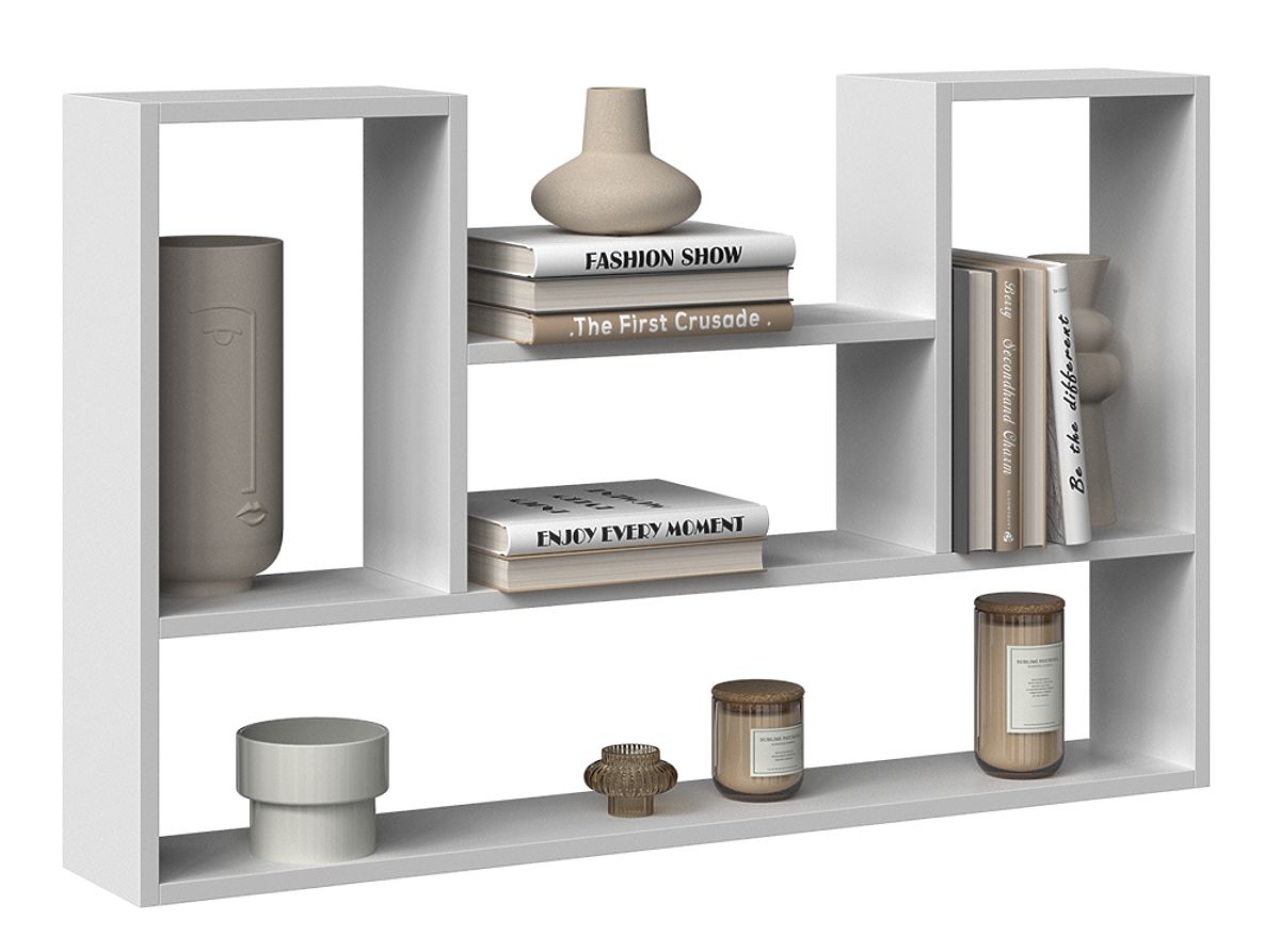 Matte white wall-mounted shelf for versatile room use. .. more