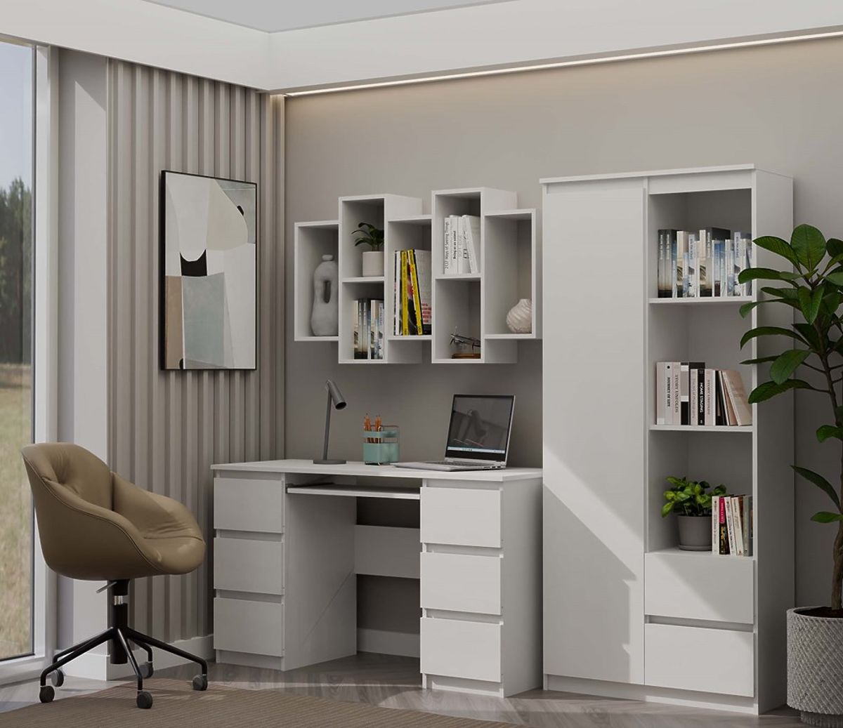 Hanging cabinets look great when a dresser or TV cabinet is placed underneath, creating a unified whole!