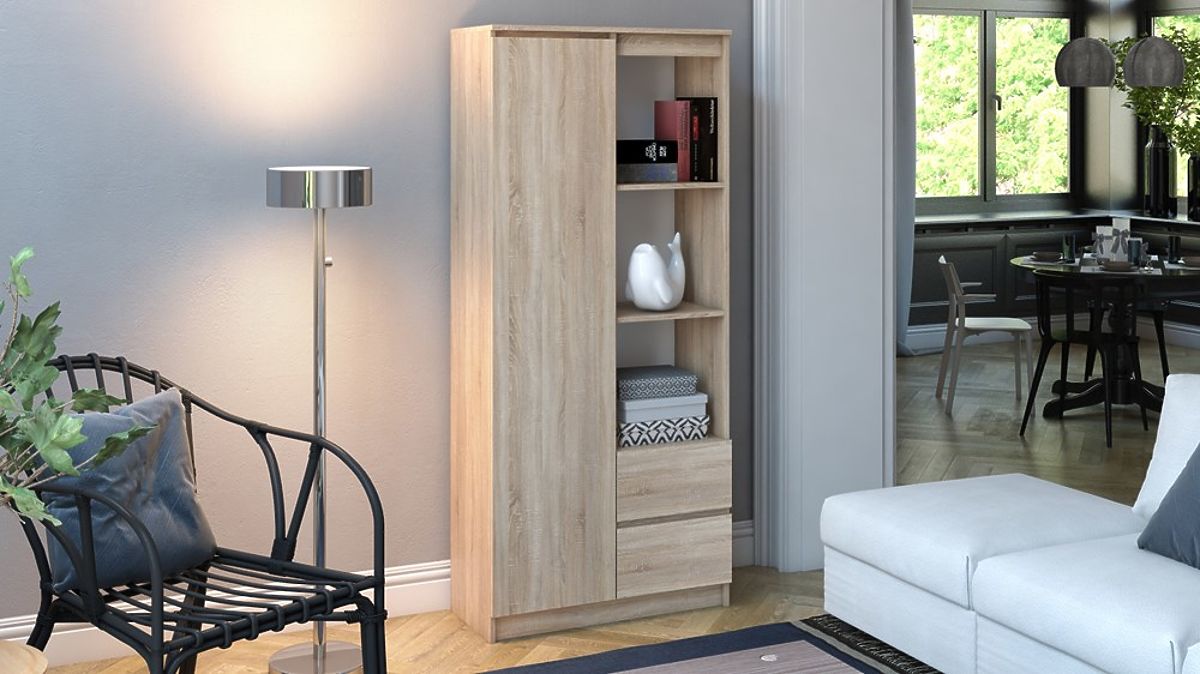The RS-80 shelf is practical furniture that finds its place in the living room, where you can place various decorations, photos, or books, as well as in the office or study, where documents need their place.
