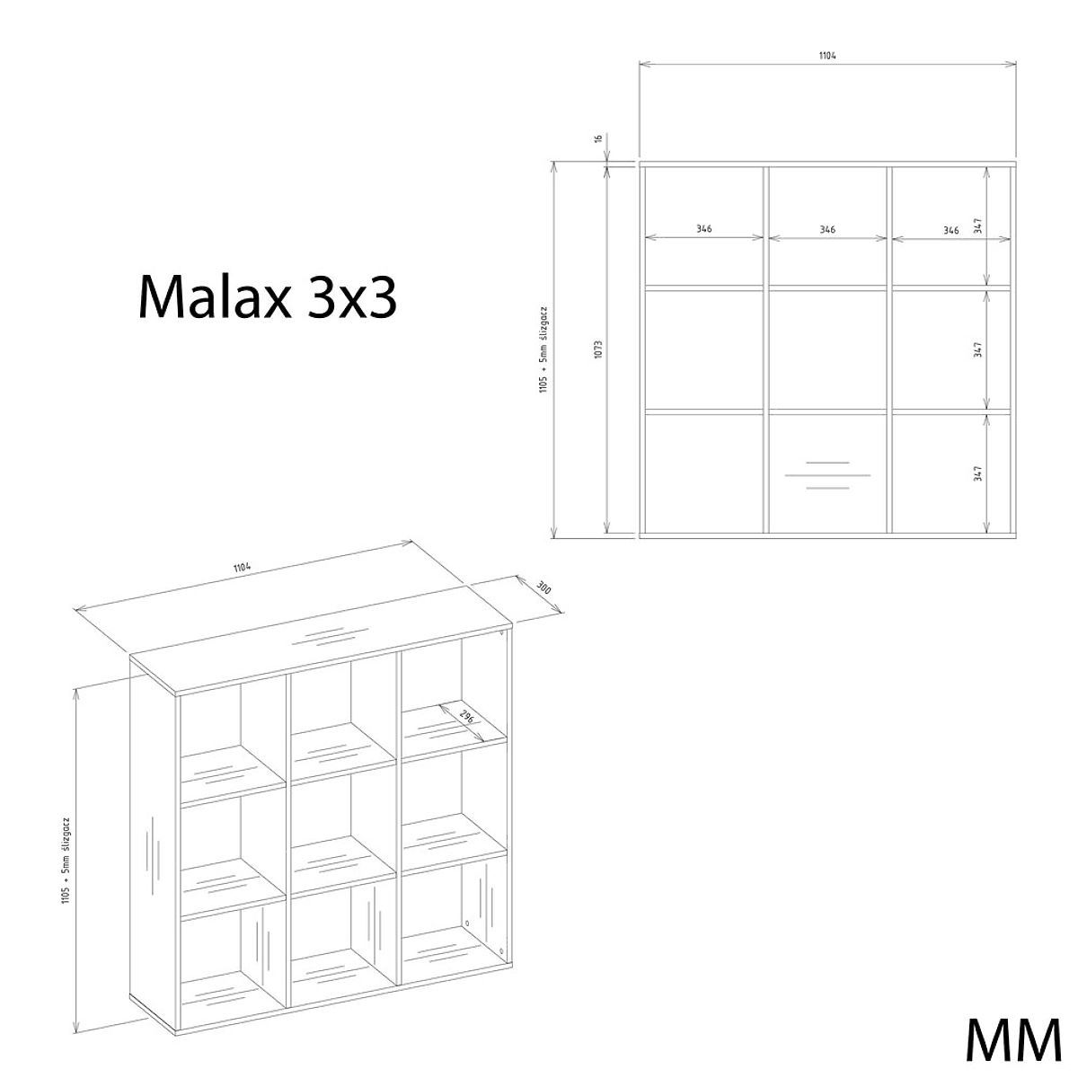 Modern MALAX 3x3 H shelf with nine compartments and solid HDF back. .. more